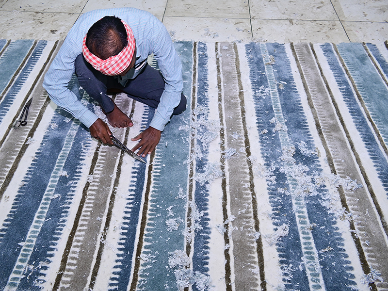 This is where we add dimension. By hand-carving around specific patterns, we create a 3D effect that makes the design "pop." It adds a level of luxury and tactile depth that machine-made rugs simply can't replicate